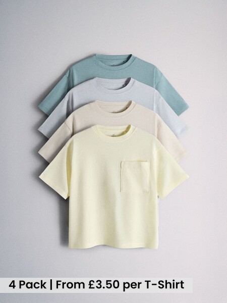 4 Pack Short Sleeve Cotton Blend Oversized Pocket T-Shirts Blue/Green/Yellow/Cream