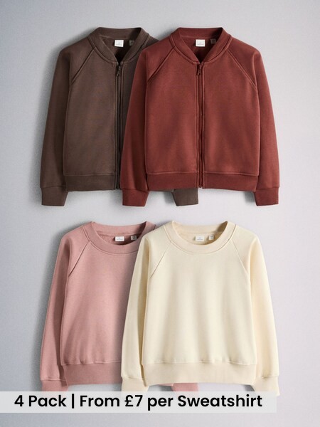 4 Pack Crew Neck Jersey Sweatshirts Pink/Spot/Brown