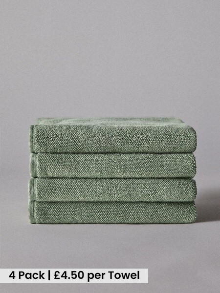 Set of 4 Popcorn Textured Hand Towels Sage Green