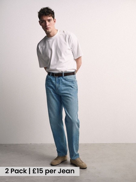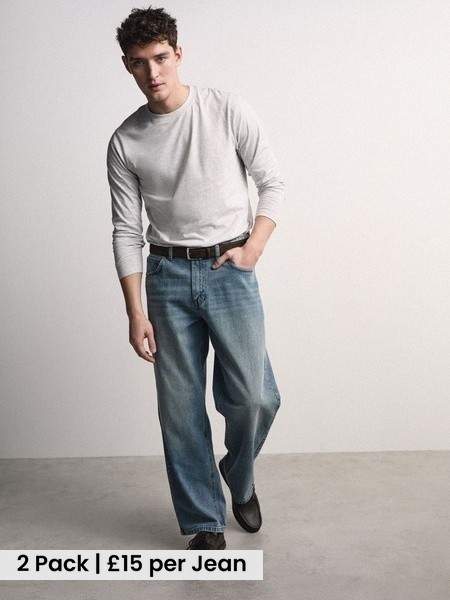 2 Pack Baggy Fit Jeans Mid Blue Denim
