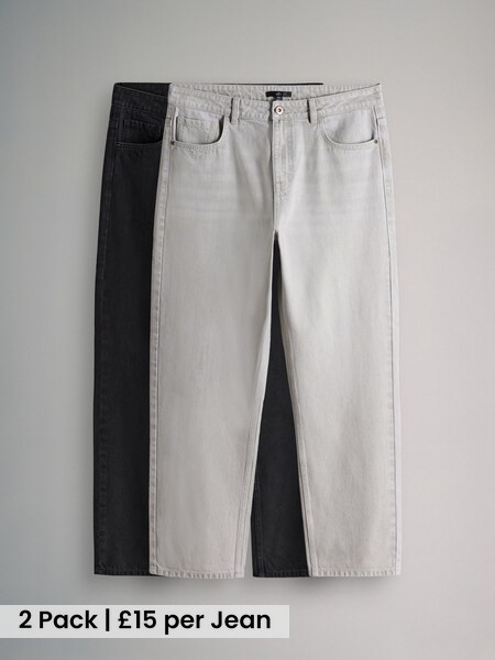 2 Pack Straight Leg Jeans Dark Blue/Mid