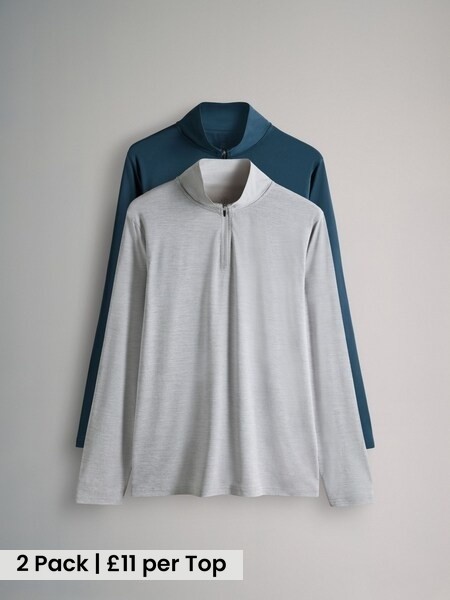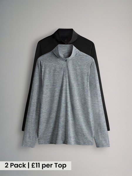 2 Pack Activewear Zip Neck Tops Black/Grey