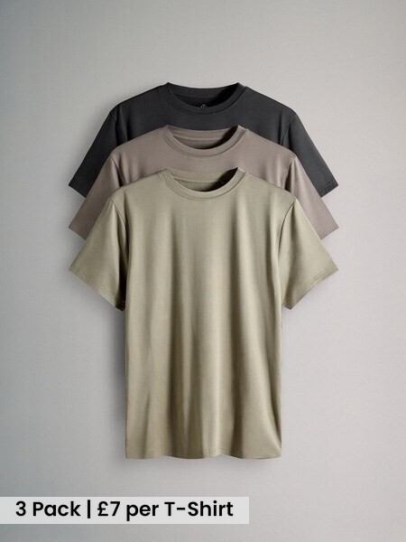 3 Pack Activewear Crew Neck T-Shirts Black/Green/ Brown