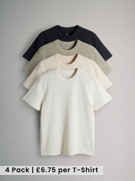 4 Pack Regular Long Sleeve Cotton T-Shirts Black/Cream/Brown/White
