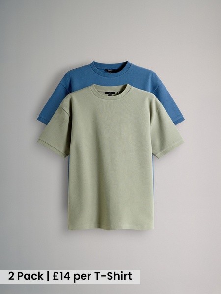 2 Pack Cotton Relaxed Fit Crew Neck TShirt Blue/Green