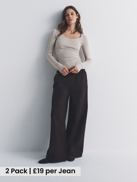 2 Pack Low Rise Wide Leg Denim Jeans Black/Mid Blue