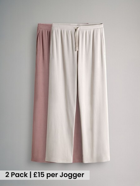 2 Pack Soft Touch Ribbed Wide Leg Joggers Pink/Cream
