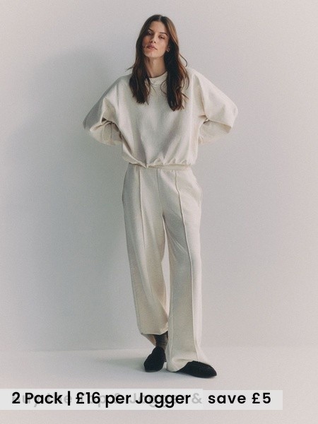 2 Pack Wide Leg Jogger Chocolate Brown/Cream