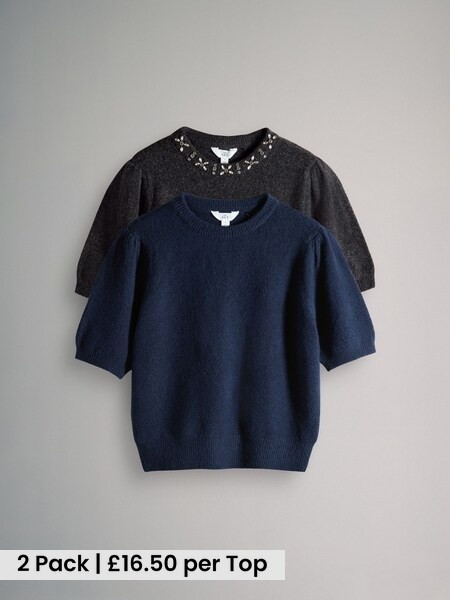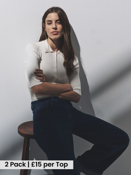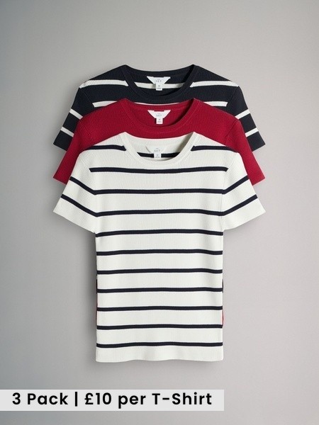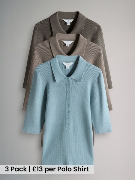 Brown/Neutral/Blue Knitted Ribbed Polo Tops 3 Pack