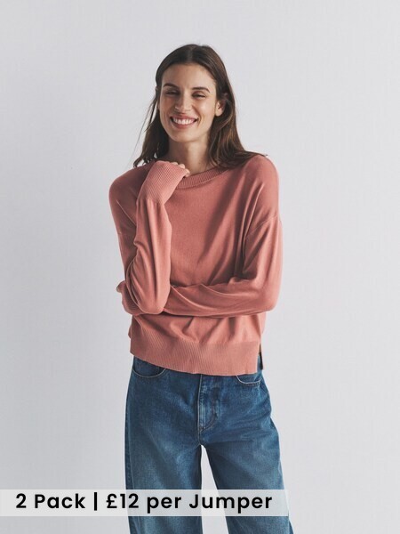 2 Pack Fine Knit Crew Neck Jumpers Pink/Rust Red