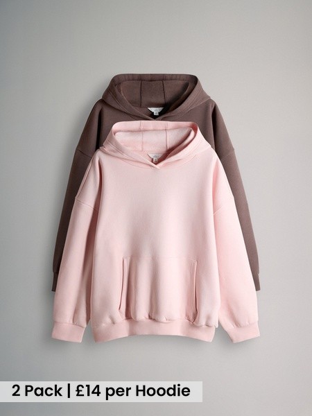 2 Pack Relaxed Hoodie Chocolate Brown/Pink