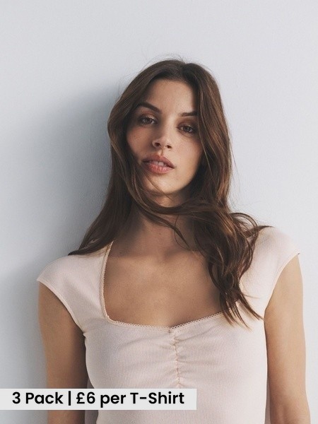 3 Pack Sweetheart Lace Detail Tops Chocolate Brown/Pink/White