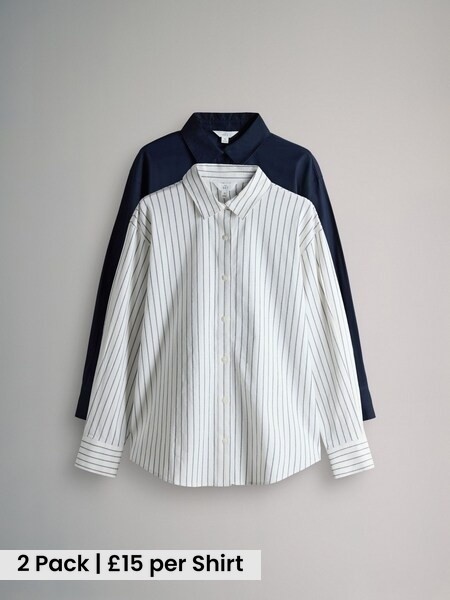 2 Pack Cotton Oxford Shirts Navy Blue/White Stripe