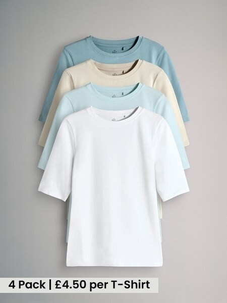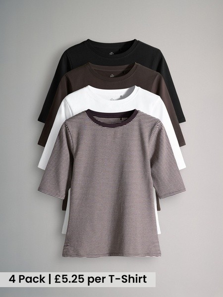 4 Pack Crew Neck Half Sleeve Fitted Tops Black/Chocolate Brown/White/Stripe