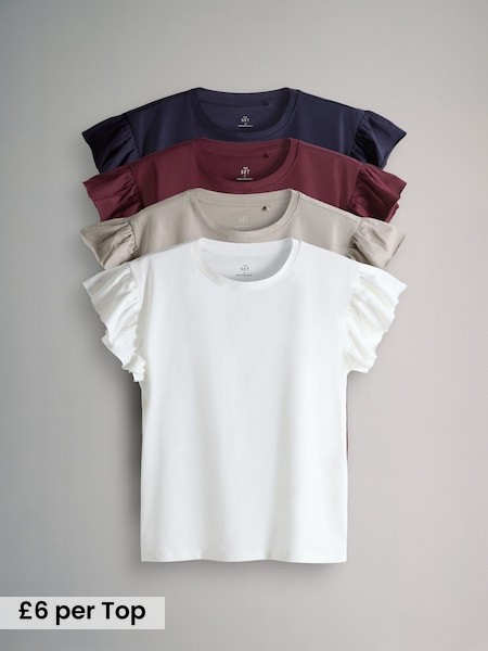 Navy/Berry/Brown/Cream - 4 Pack Ruffle Short Sleeve T-Shirts