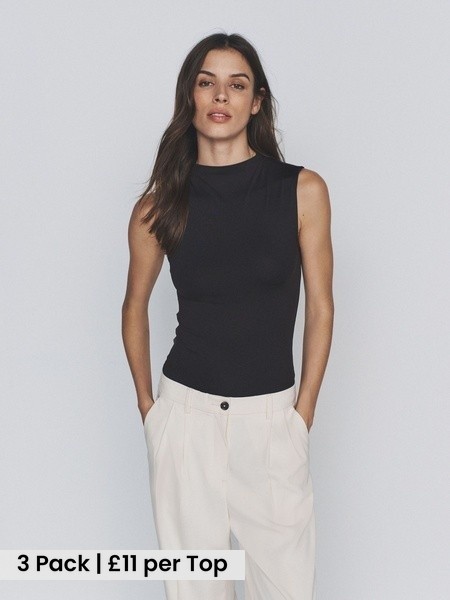 3 Pack Soft Touch High Neck Tops Black/ChocolateBrown/White